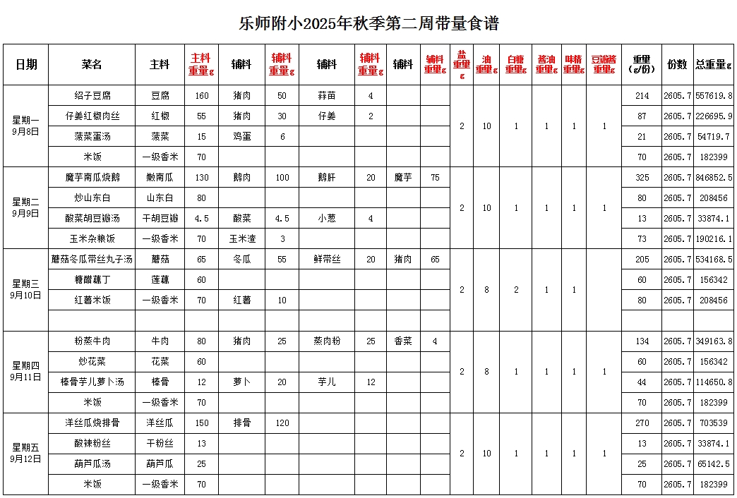 >>第2周带量食谱 | 2025年秋季学期